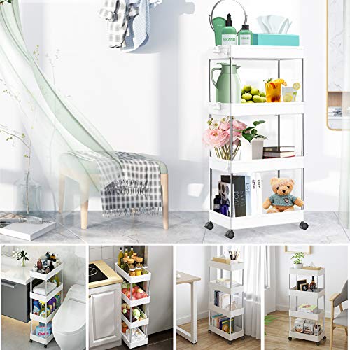 【高品質の家庭用収納 ワゴン】高級な材質は採用なので、高い安定性を誇ります。スリムボディーをして、部屋の隙間に自在に配置されています。トイレ収納、ベッドルーム、居間、子供部屋、キッチン、書店、美容室などの使用に最適して、収納力は抜群です。いろんなシーンで大活躍なキッチンワゴンです