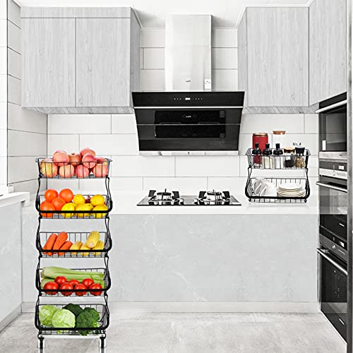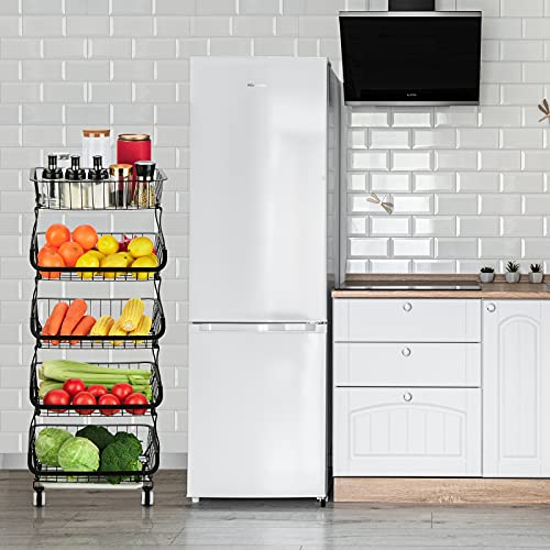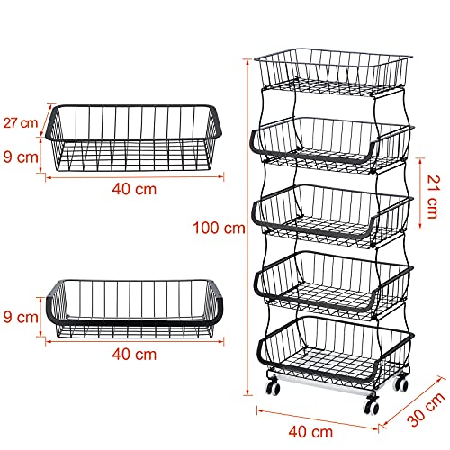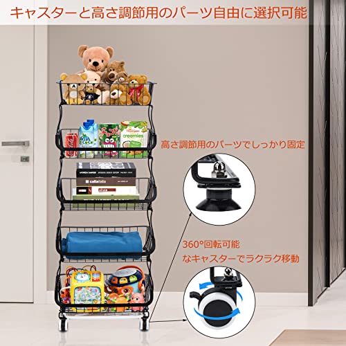 Toplife バスケットワゴン キャスター付き 野菜ワゴン 5段 スタッキングバスケットラック トレイ付属 組立簡単
