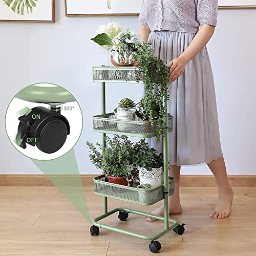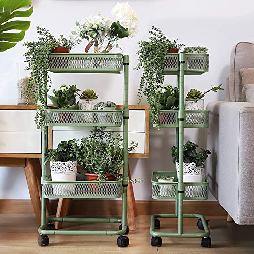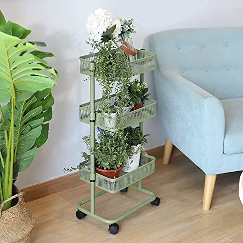 LeHom 高さ調節 キッチンワゴン 軽量 組み立て簡単 ワゴン 収納ラック キャスターワゴン (緑)