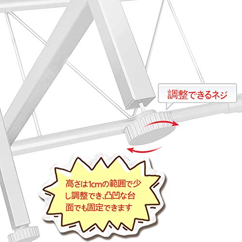 【安定感をアップ】 ラックの各足元に高さを調節できるネジが付きのため、台面が平らでなくても、ネジのご調節により凸凹な台面