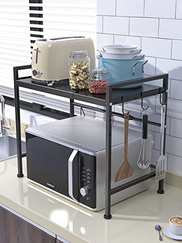 レンジ上ラック 伸縮式 2段 ブラック 幅 43~63 棚板高さ31~41 調節可 キッチンペーパーホルダー付き