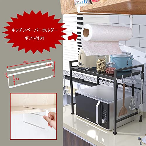 | 商品名 | レンジ上ラック 伸縮式 2段 ブラック 幅 43~63 棚板高さ31~41 調節可 キッチンペーパーホルダー付き |