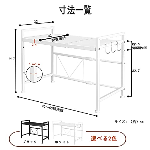 レンジ上ラック レンジラック 伸縮式 幅(40~60cm) 棚板高さ調節可 耐荷重70kg