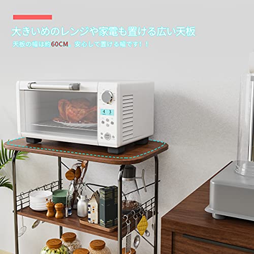レンジ台 幅60 3段式レンジラック キッチンワゴン レンジボード キッチン収納棚 キャスター付き 食器棚 家電