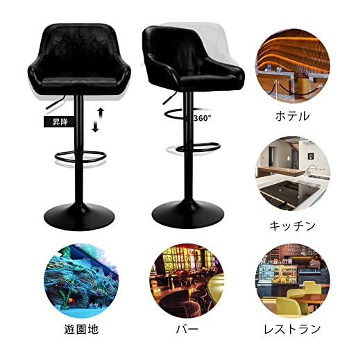 lsccgg カウンターチェア 1脚 おしゃれ バーチェア ハイチェア 昇降 回転 PUレザー 背もたれ キッチン 椅子 ブラ