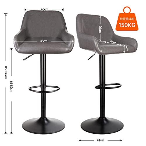 lsccgg カウンターチェア 1脚 おしゃれ バーチェア ハイチェア 昇降 回転 PUレザー 背もたれ キッチン 椅子 グレ