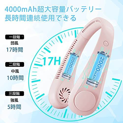 首掛け扇風機 ネッククーラー 人気 羽なしネックファン 4000mAh大容量 長時間連続使用可 3段階風量調整 Type-C充