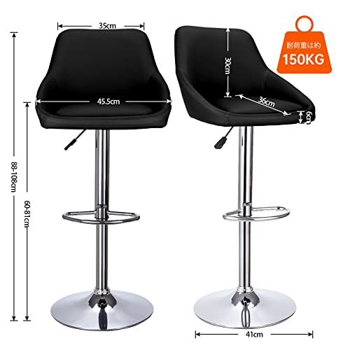 lsccgg カウンターチェア バーチェア おしゃれ ハイチェア 昇降 回転 2脚セット PUレザー 背もたれ キッチン 椅