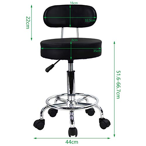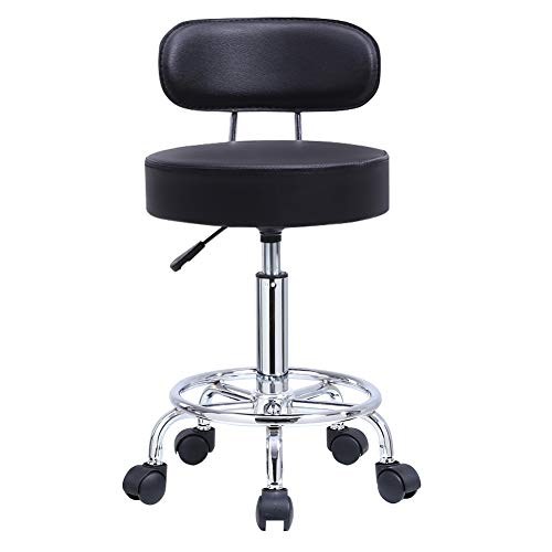 KKTONER 丸回転昇降スツール キャスター 低い背もたれフットレスト付き 高さ調節可能 チェア 製図pc仕事椅子 ブ