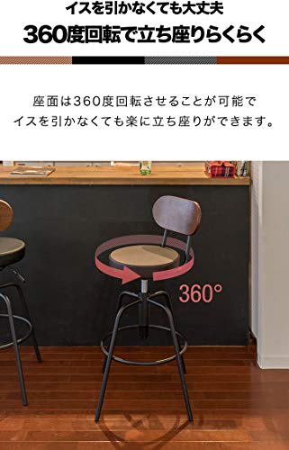 | 商品名 | ottostyle.jp アンティーク風 背付きバースツール カウンターチェア ガス圧昇降式 高さ調節 ウッド 背もたれ |