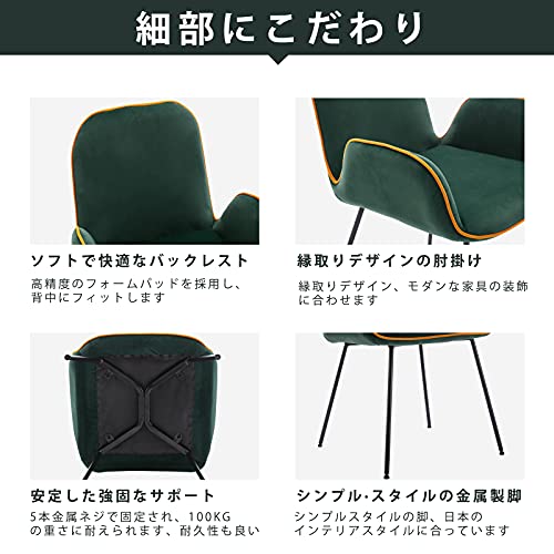 Kmax ダイニングチェア 椅子 おしゃれ 北欧風 リラックスチェア ベルベット ブラック足 アームレスト付き デス