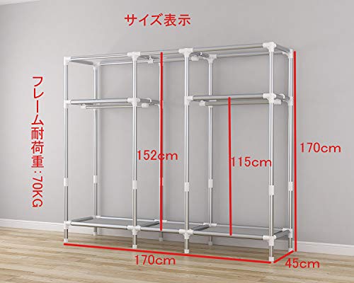 LuluLife ワードローブ クローゼットハンガー カバー付き 組み立て式 防水 防塵 防汚 幅170×奥行45×高さ170cm (M、D
