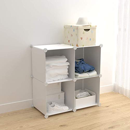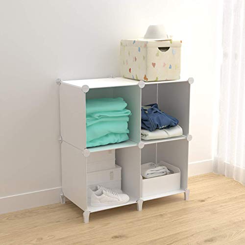 SIMPDIY 本棚 大容量 整理棚 ワイヤー収納ラック 組み立て式 衣類収納ボックス 便利な ワードローブ - 白(4ボッ