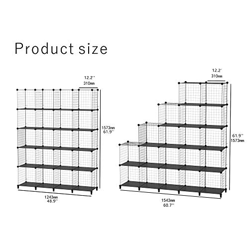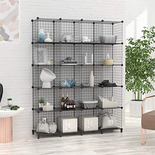 SIMPDIY 本棚 大容量 整理棚 ワイヤー収納ラック 組み立て式 衣類収納ボックス 便利な ワードロ (20ボックス, 黒)