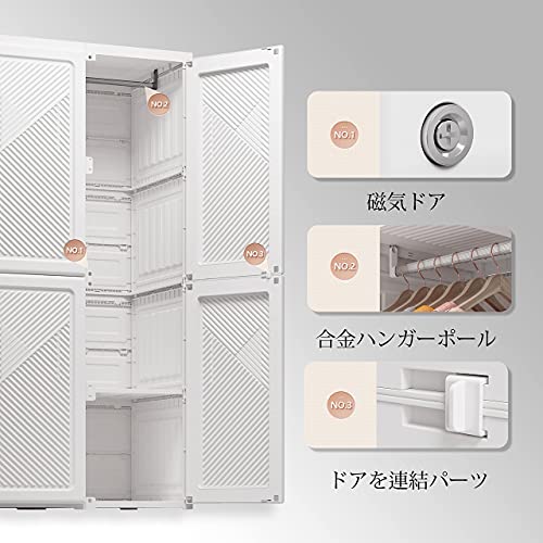 【丈夫で長持ち】遮光・防湿・防臭・防カビ・防塵。環境保護、無害なPP材料を選択し、長く使えます。磁石で扉を安定し、奥には高品質のアルミ製ハンガー収納バーがあります。