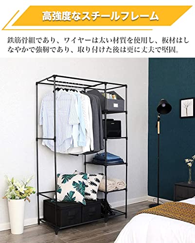 ワードローブ 大容量 クローゼット不織布カバー付き ハンガーラック シンプル収納棚 おしゃれ 組み立て式 省