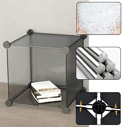 【高品質素材】本棚は、高スペックの厚手のPP素材パネルと高品質のABSコネクタを採用し、部品同士の密着を確保しています。金属フレーム全体が補強されており、各立方体の頑丈な構造は5kgの荷重に耐え、強度と耐衝撃性に優れ、変形しにくいです。