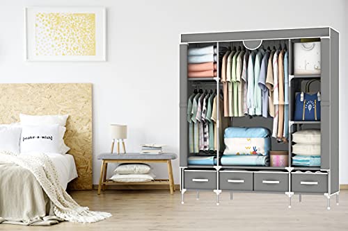 【サイズ】:幅150×奥行45×高さ170cm。重量:8.2kg。豊富な収納スペースを備え、4つの収納コンパートメントは、あらゆる種類のキルト、枕、折り畳まれた服を収納できます。中間層はあらゆる種類の服を掛けることができます,4つの引き出しには靴下、下着、パンツ、日常の小物などを簡単に収納できます。