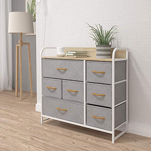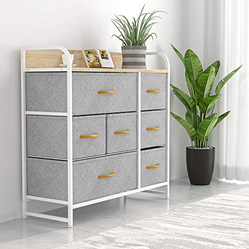 Aoxun チェスト 収納 タンス チェスト 布製 衣類収納 簡単組立チェスト 3段7杯 変形にくい グレー
