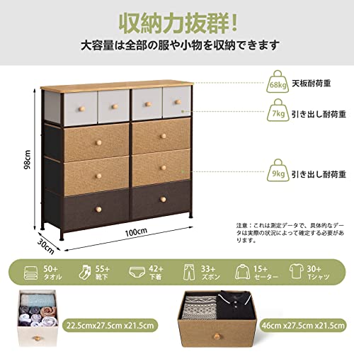 REAHOME チェスト 4段10杯布製チェスト 収納タンス 衣類収納 洋服チェスト 小物・衣類収納ボックス おもちゃ箱