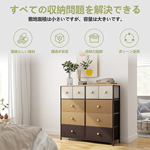 【素晴らしい用材】すべての細部は製品の高品質の体現です。滑らかな木製取っ手は天然木材で作られています。新型カチオン生地は不織布よりもしっかりしていて、破損しにくいです。表面は防水加工があって、拭くことができて、清潔しやすいです。3mmMDF中間層は引き出しの底をより丈夫にして、耐荷重が増えます。中空スチール構造は丈夫で自重も軽くできます。すべての用材は心を込めてアップグレードしてい