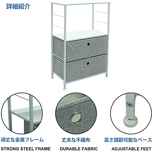 | 商品名 | LINKLIFE 2段2箱木天板付き布製引き出したんす ファブリックボックス 収納ボックス付きラック スチールフ |