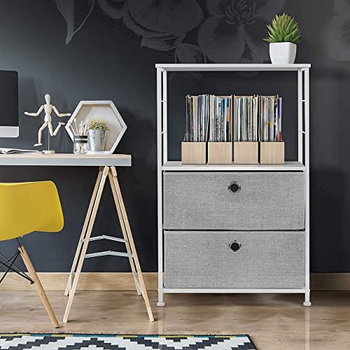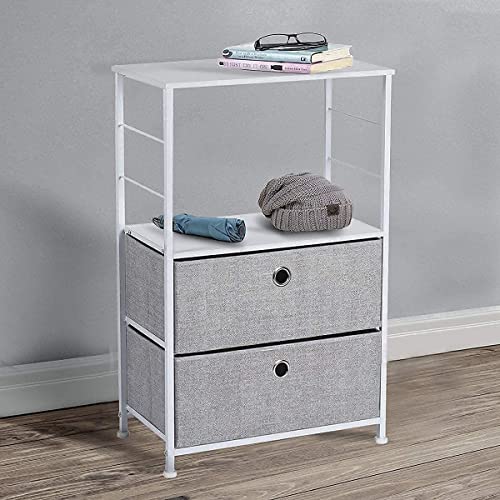LINKLIFE 2段2箱木天板付き布製引き出したんす ファブリックボックス 収納ボックス付きラック スチールフ