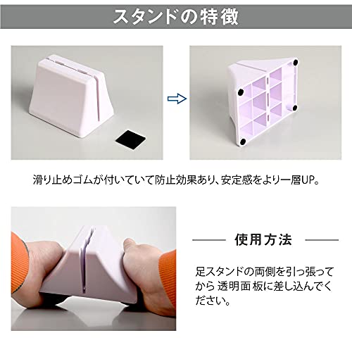 【パーテーション素材(1台あたり)】:スクリーン(透明ポリスチレン板)x1、脚部パーツ(ABS樹脂製)x2 両面テープ付き 生産国:日本