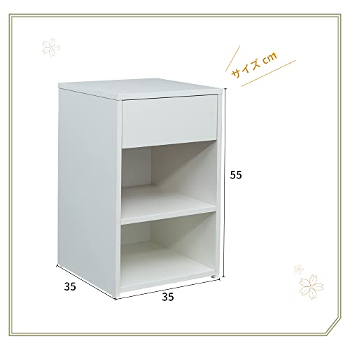 【商品仕様】製品サイズ:幅35×奥行き35×高さ55cm;本体重量:11kg;材質:E1合成樹脂化粧繊維板;高級メラミン加工;引出し1個;収納棚2層。