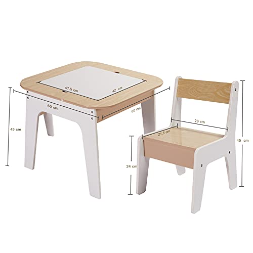 Toffy & Friends 子ども用テーブル 椅子セット 木製 キッズテーブル&チェア 3点セット 多機能 子供プレイ テーブ