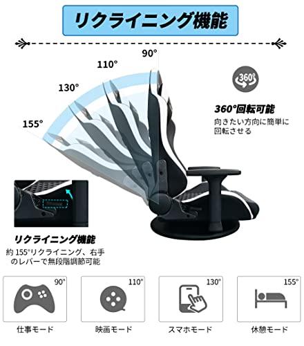 | 商品名 | NIUBGS ゲーミングチェア 座椅子 360°回転 ゲーム用チェア 155°リクライニング ハイバックチェア 3D調整可能ひじ |