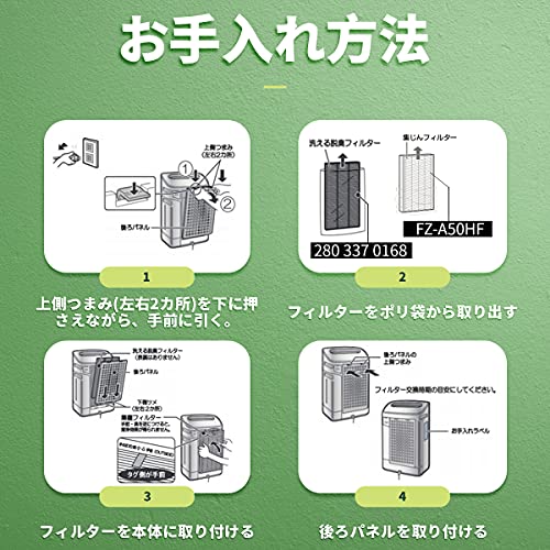 【製品型番】空気清浄機対応 交換用フィルター 集塵フィルター「FZ-A50HF」と洗える脱臭フィルター「280 337 0168」互換品(非純正)。