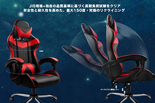 【背もたれ調節機能】165度のリクライニング可能、椅子に座ったままでくつろぐことができます。レバー一つで簡単に背もたれを調節でき、作業とゲームプレイの姿勢の変化や体格差に応じた最適なサポートを実現します。オフィスでの休憩や仮眠にも最適です。
