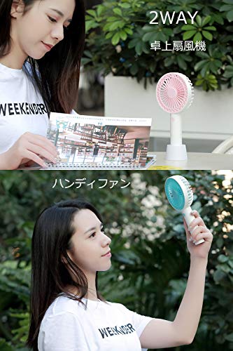 【手持ちと卓上・充電便利】お出掛けの時に手持ちタイプとして利用可能、ストラップも付き、滑って落ちる心配が要りません。スマホンと扇風機を掛けるスタンド付きで卓上タイプとして映画を見ながら風を楽しめます。USB充電タイプなのでACアダプターやモバイルバッテリー、PCから充電できます。