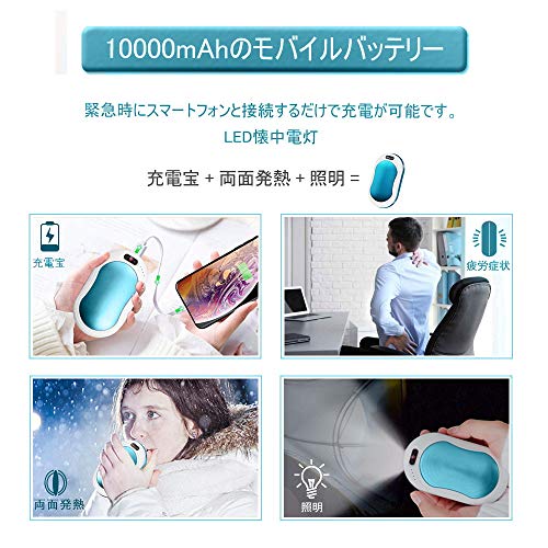 (3)?? 【電気カイロ 1台3役】ハンドウォーマーにとして性能が優れ、 [2つのスイッチを連続して押す] LEDライトをオンにします。これは、停電の場合に緊急に使用できます.10000 mAh超大容量電池は,モバイル電源として使用可能である.通勤、通学、仕事、に最適です.
