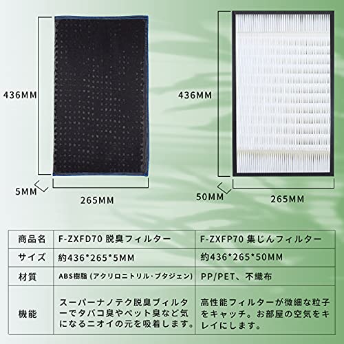 【交換品】空気清浄機用フィルター F-ZXFD70、F-ZXFP70 と互換性のある脱臭フィルター、集じんフィルターです。