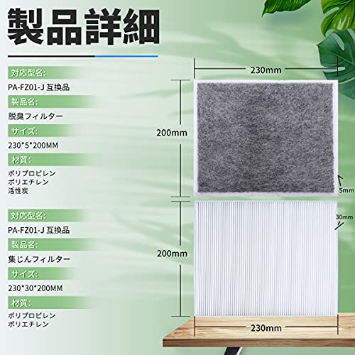| 商品名 | PA-FZ01-J 空気清浄機用交換フィルター PA-ZA06 用空気清浄機用交換フィルター 高集塵フィルター 脱臭フィルター |
