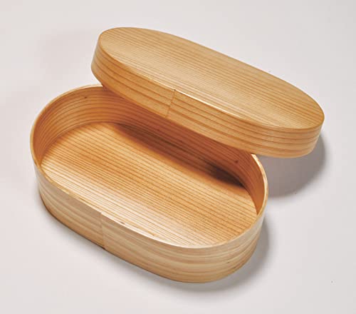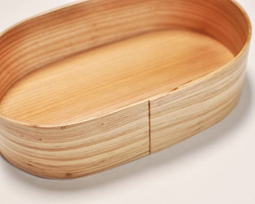 厳選された木材だけを使用し安心で上質な 日本製 まげわっぱ 網代 小判型 490ml 16.3×10×高さ6cm 仕切なし 手に