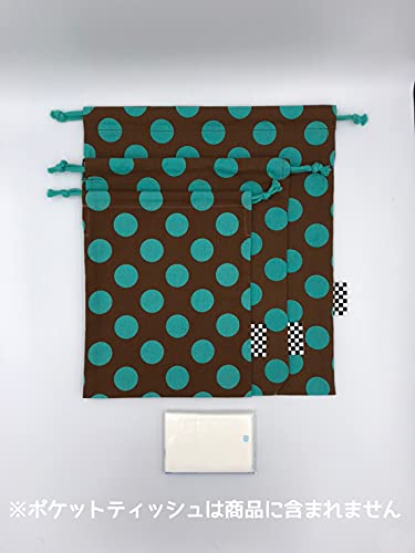 布くろ屋 ハンドメイドきんちゃく袋 (L, ビッグドットブラウン×ターコイズ)