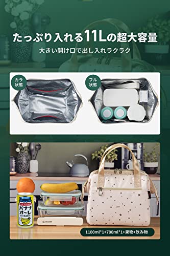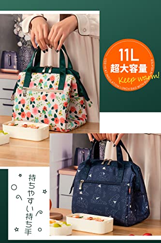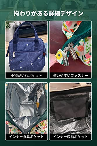 【断熱&安全な素材を利用】保温ランチバックの外側は防水性の生地、中心部分はPEコットン、内側は断熱性アルミフォイルで作られていて、食べ物を新鮮な状態で保つし、汚れても濡れてもサッと拭くだけでキレイになりました。保冷剤を入れて保冷バッグとしての利用も可能です。このランチバッグは耐久性に優れ、異臭がなく、摩擦防止、防水性に