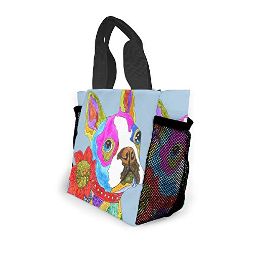 | 商品名 | トートバッグ ランチバッグ お弁当バッグ 手提げバッグ オシャレ ボストンテリア 花と犬 食品収納 大容量 軽 |