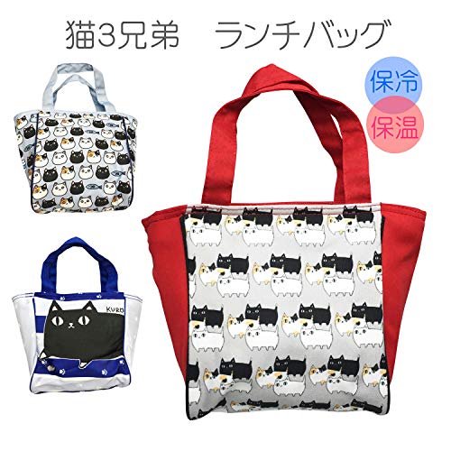 ランチバッグ 猫3兄弟 保温 保冷バッグ お弁当袋 猫柄 ねこ ki-107 (レッド)