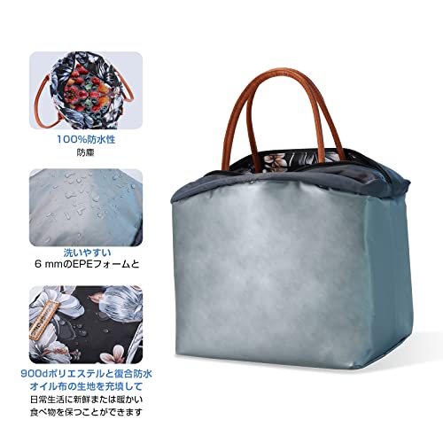 【漏れ防止】?り返し使えるランチバッグには、環境にやさしい防水ポリエステルの裏地を採用しております。柔らかく、漏れ防止、100%防水性、洗いやすいです。6 mmのEPEフォームと900dポリエステルと復合防水オイル布の生地を充填し