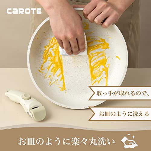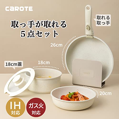 CAROTEフライパンセットIH&ガス火対応5点 取っ手のとれる 一人暮らしセット マーブルコート くっつかなく洗い