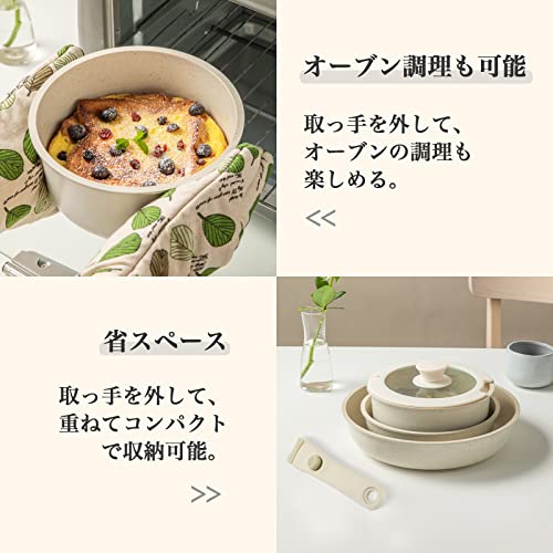 | 商品名 | CAROTEフライパンセットIH&ガス火対応5点 取っ手のとれる 一人暮らしセット マーブルコート くっつかなく洗い |