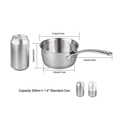 IMEEA ミルクパン ソースパン 片手鍋 ミニミルクパン 離乳食 18-8 ステンレス 13cm IH対応 500cc 目盛付