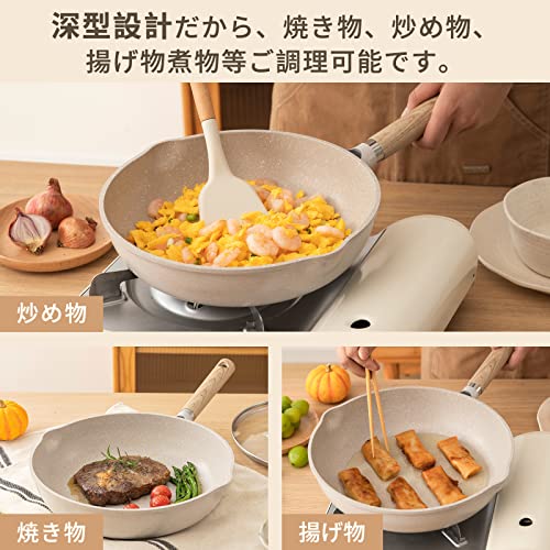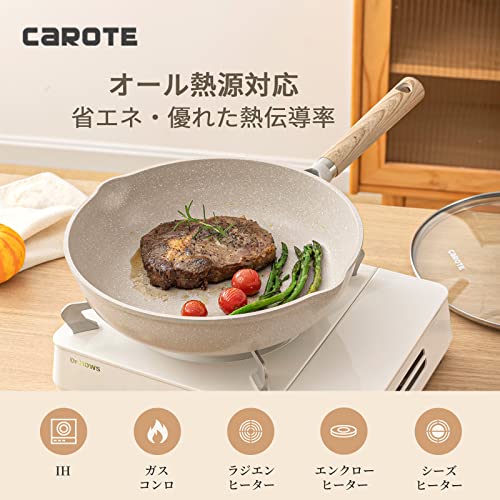 CAROTE 深型フライパン28cm IH対応 1年保証 マーブルコート くっつくことがなく洗いやすい 炒め鍋 COSY(28cm)