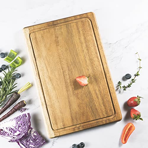 【耐久性と安定性】この木製まな板は、変形しにくいアカシアの木でつくられます。耐熱に強く、腐食やひび割れがありません。 アカシアはまな板を耐久性と安定性のあるものにする広葉樹です。
