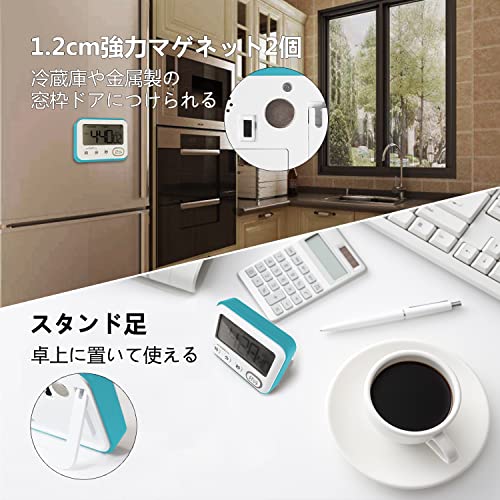 大画面 勉強 デジタル タイマー マグネット 無音ストップウォッチ 12/24時間デジタル時計 キッチン アラーム (