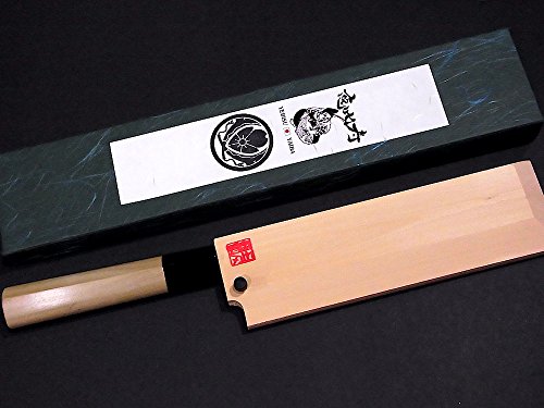【 薄刃包丁 / サヤ付き 】薄刃包丁は日本の伝統的な野菜用包丁です。 薄刃包丁と菜切り包丁との違いは、片刃(=薄刃)か両刃(=菜切り)で、固い野菜を砕くことなく切るために他の刃物と比較して薄くなっています。 適度な重さもあり、まな板の上で刻み物をするときに大きくストロークを取りやすいです